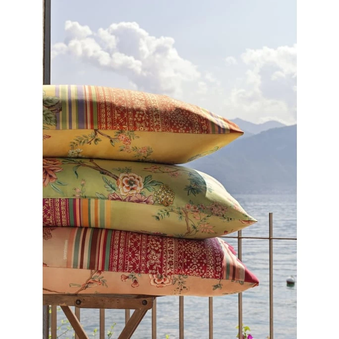 Die neue Granfoulard Kollektion von bassetti entführt Sie in die italienischen Villen und Gärten rund um den Lago di Como und Lago Maggiore. Die Elemente dieses so detailreichen PALLANZA-Designs sind inspiriert von der Pracht und der Energie einer üppigen Vegetation, typisch für die botanischen Gärten, die die Villen an den Seen umgeben. Ein elegantes, florales Ranken-Motiv mit Schmetterlingen und kleinen Vögeln auf der Vorderseite und eine Streifendessin auf der Rückseite werden farblich wunderschön hervorgehoben. Die Kissenhülle PALLANZA von bassetti ist aus 100% pflegeleichter Baumwolle gefertigt und mit einem Reißverschluss zum bequemeren Ab- und Beziehen ausgestattet. Wir bieten Ihnen die Deko-Kissenhülle in unterschiedlichen, prächtigen Farb- und Größenvarianten in unserem AMBIENDO Shop an. Tauchen Sie ein in die farbgewaltige Welt von bassetti und lassen Sie sich verzaubern!