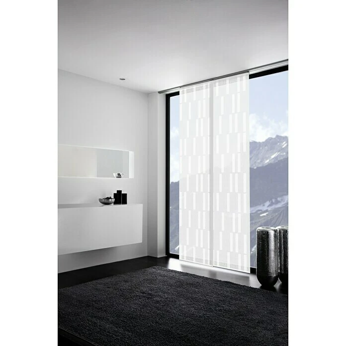Der Expo Ambiente Flächenvorhang Piano besteht aus 100 % Polyester. Er ist pflegeleicht und setzt innovative Akzente in modernem Design. Die tastenartige Musterung wertet jeden Raum auf und unterstreicht eine individuelle Einrichtungsgestaltung. Der Schiebevorhang in der Standardbreite von 60 cm ist mit 300 cm extra hoch und somit auch für hohe Fensterflächen bestens geeignet. Je nach Bedarf lässt sich das Stoffpaneel auch leicht auf die benötigte Höhe kürzen.