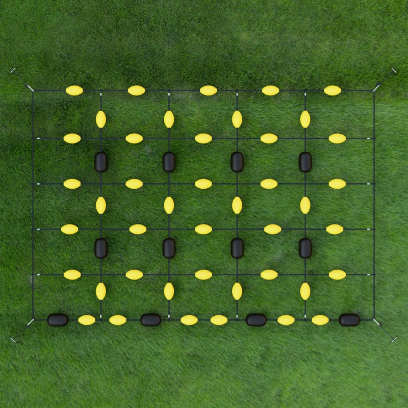 An essential addition to your soccer training equipment, the floor matrix deflector is perfect for goalkeepers of all levels from amateur to professional. With 12x large floats & 43x small floats, there are an unlimited amount of deflection possibilities to keep your keeper on their toes. 4x durable U-pegs are included to secure the deflector into the ground. Even with consistent impact from the ball, the floor deflector will remain securely in place. Optional weights are available as an upgrade to help further secure the deflector into the ground for optimal long-lasting use. A durable carry bag is included as standard with the deflector for simple storage & easy transportation.