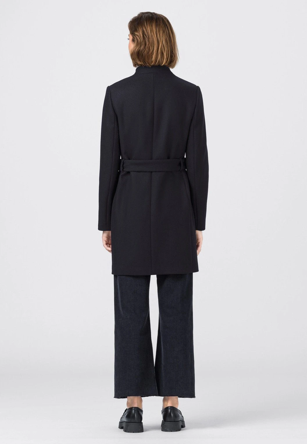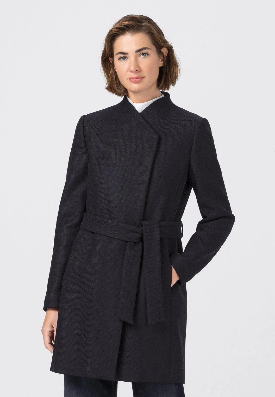 Stylisches Outdoor Piece in zeitlosem Design: HALLHUBER Wollmantel mit asymmetrischer Druckknopf-Verschlussleiste und kleinem Stehkragen. Die Eingrifftaschen sind unsichtbar in die Teilungsnähte eingearbeitet, der Bindegürtel akzentuiert die Taille. Modell aus hochwertiger, mulesing-freier Schurwolle-Qualität von unserem italienischen Partner Manteco.think forward. Mulesing ist eine schmerzhafte Methode, um Schafe vor Fliegenbefall zu schützen. HALLHUBER befindet diese Verfahrensweise als nicht ökologisch vertretbar, weshalb bei der Auswahl von Merinowolle darauf geachtet wird, sie von Zulieferern zu beziehen, die kein Mulesing betreiben.