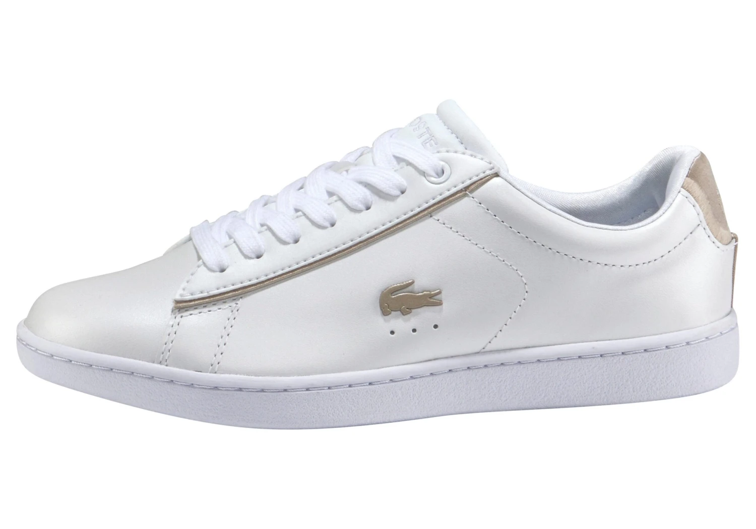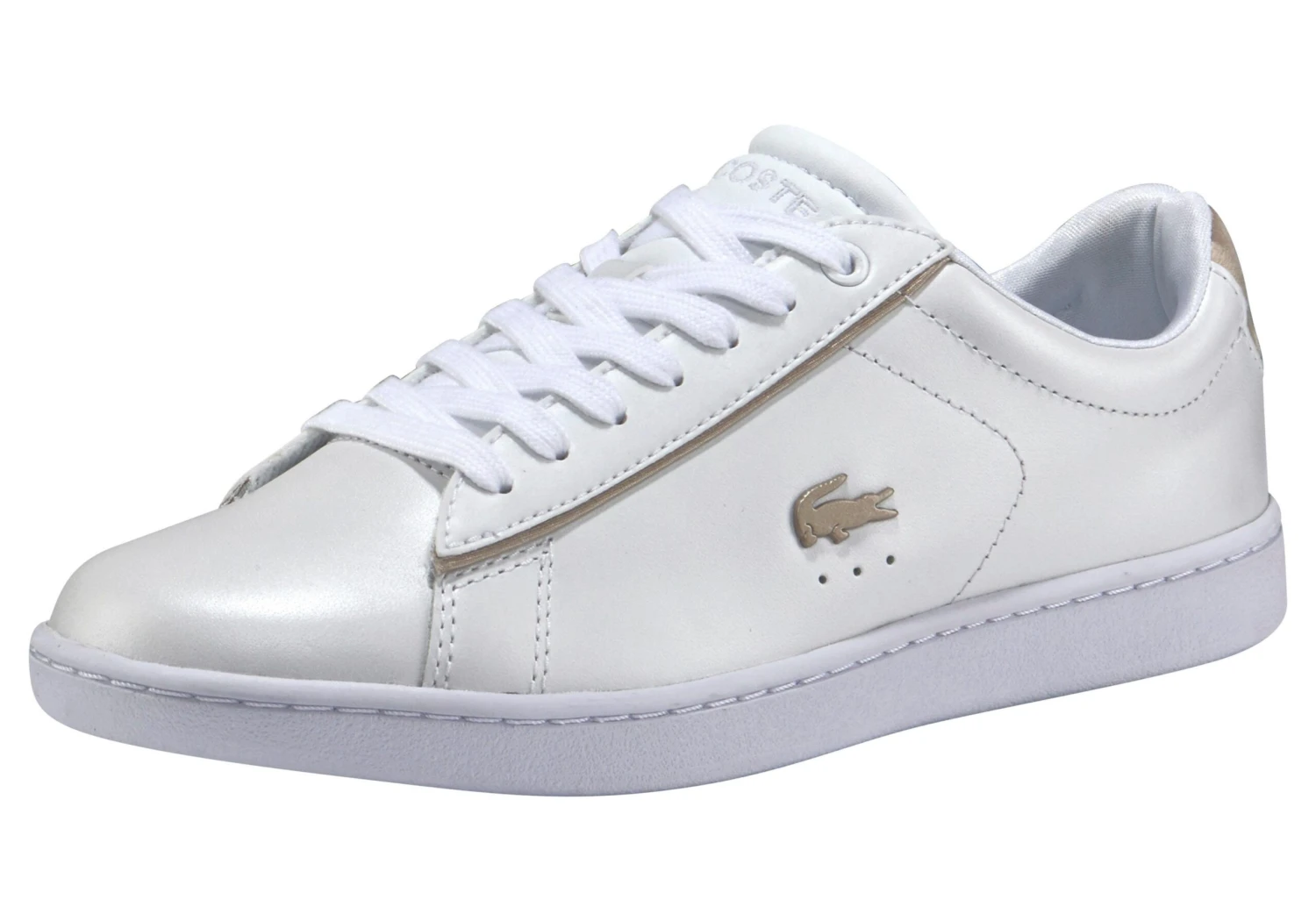 Sneaker mit Glam-Faktor: Modell »Carnaby Evo 118« von Lacoste aus hochwertigem Leder in schimmernder Perlmuttoptik. Sein gleichermaßen sportiver wie eleganter Look macht ihn zum Must-have der Saison. Da man diesen Damenschuh am liebsten jeden Tag anzieht, ist es umso besser, dass er auch in puncto Tragekomfort keine Wünsche offen lässt. Der Schaft ist angenehm weich gepolstert und das OrthoLite®-Fußbett ist herrlich bequem und überzeugt mit dämpfenden Eigenschaften. Die Gummilaufsohle ist leicht profiliert und strapazierfähig. Das wundert keinen: Der Sneaker »Carnaby Evo 118« von Lacoste läuft anderen Freizeitschuhen im Schrank ganz easy den Rang ab.