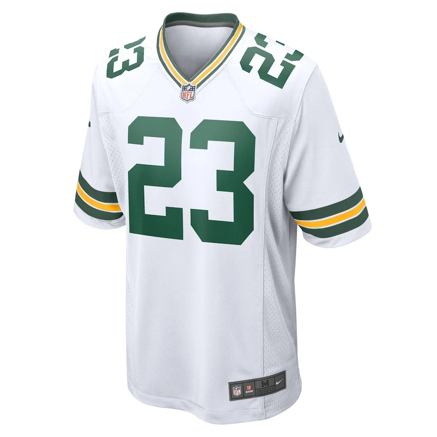 Rep the on-field look of your favorite Green Bay Packers player with this Jaire Alexander Game jersey from Nike. Its heat-sealed name, numbers and team details provide a kickoff-ready aesthetic while also offering a comfortable, lightweight feel. Designed for everyday movement, this jersey has a versatile tailored fit and features mesh side panels for added ventilation as you celebrate every big play by the Green Bay Packers this season.