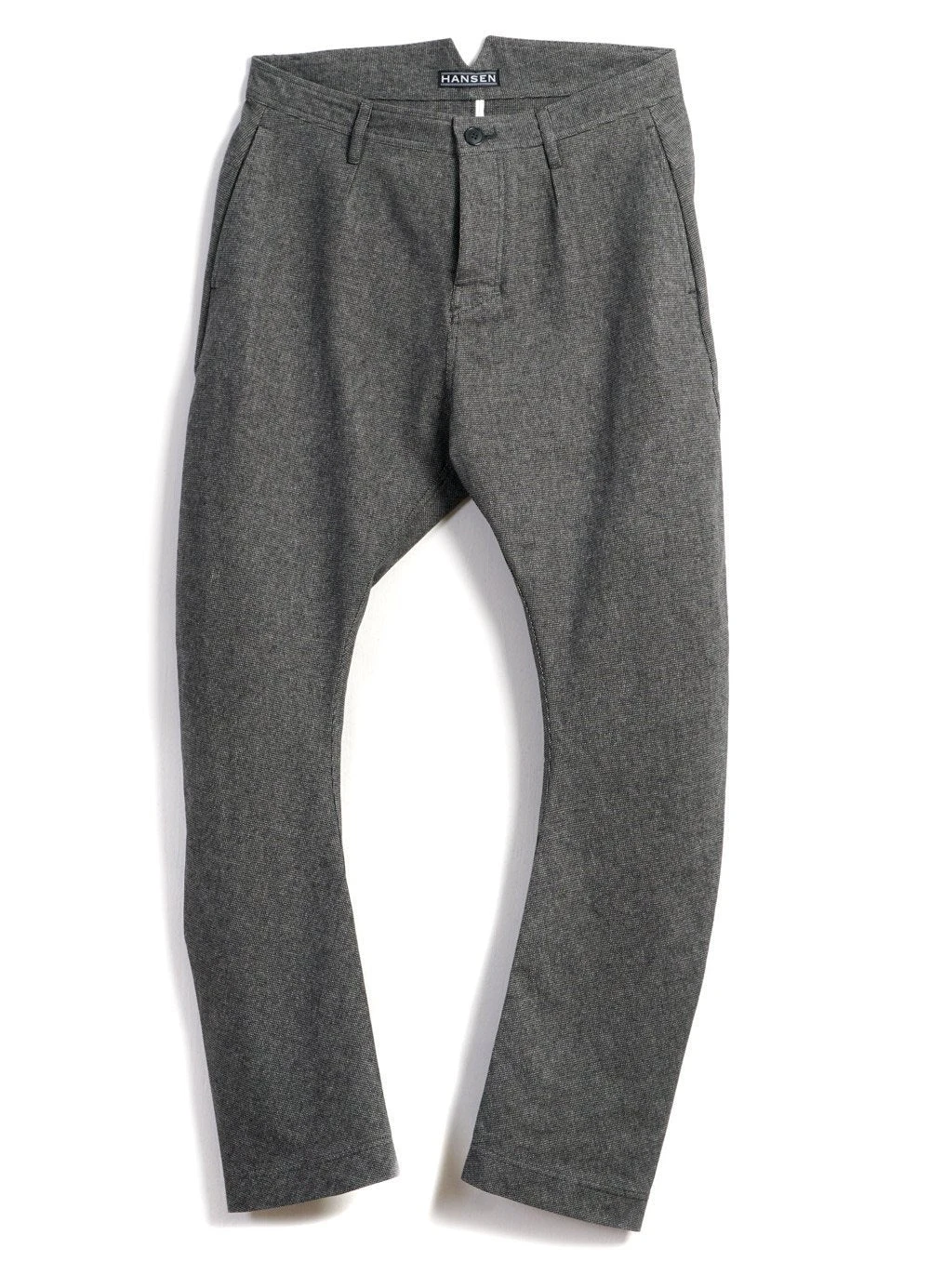 Otto is something out of the ordinary that has become a HANSEN signature item. It has a back yoke, a very high rise, and a split in the waistband and paspel back pockets. Yet it is the shape of the legs that is something else. We call Otto driving trousers because it has roomy thighs, quite a bit of taper on the legs, and a characteristically circular shape when lying flat.