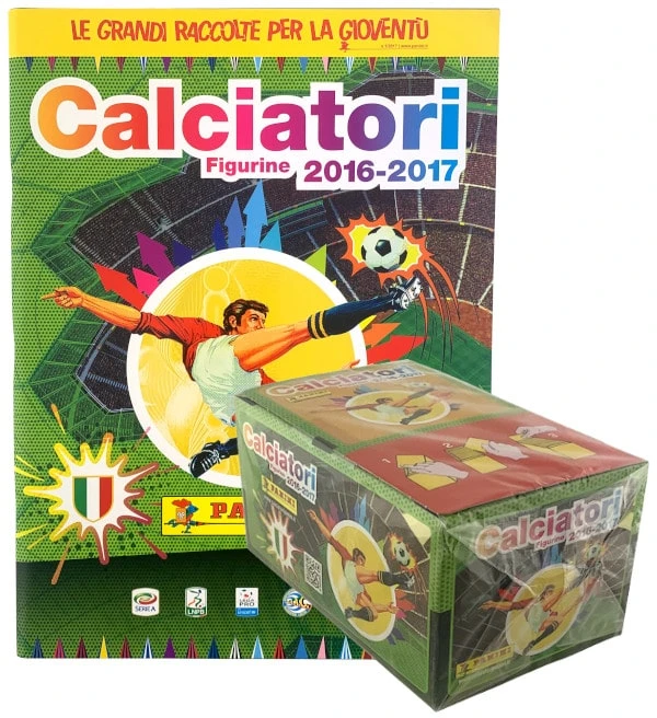 Album + Display mit 100 Tüten aus der “Panini Calciatori 2016 – 2017” Sticker-Kollektion. Jede Tüte enthält 5 Sammelbilder.