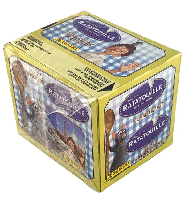 Display mit 50 Tüten zur Sticker Serie “Panini Disney Ratatouille”.
