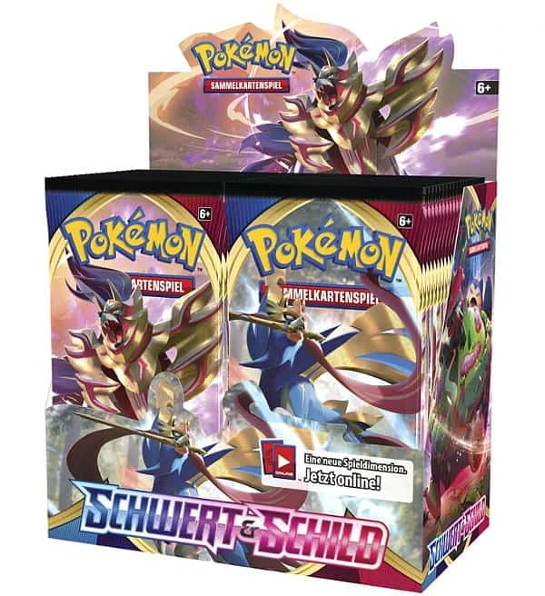 Ein original eingeschweißtes Display mit 36 Boostern der Pokemon Schwert & Schild 1 Trading Cards Serie. Jede Tüte enthält 10 Karten, so dass in der Box insgesamt 360 Cards enthalten sind.