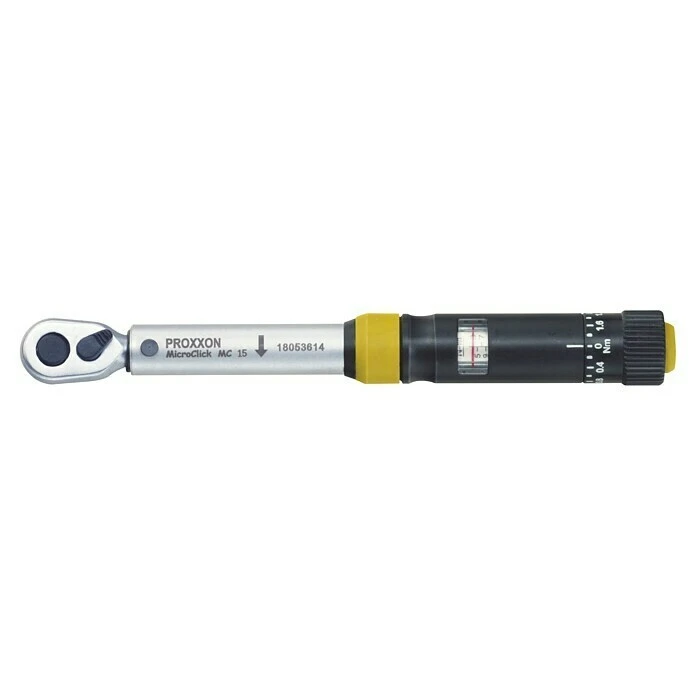 Der Proxxon Drehmomentschlüssel MicroClick MC 15 (1/4″) für 3 – 15 Nm ist ideal für Reparaturen und zur Montage hochwertiger Komponenten. Er besitzt einen 1/4″-Vierkant-Antrieb (6,3 mm) und einen Umschalthebel für Rechts- und Linkslauf. Mit dabei ist ein zusätzlicher Adapter zum Einsatz von Standard-Schrauberbits (Sechskant 1/4″). Die Genauigkeit beträgt +/- 3%. Der Stahlschaft überzeugt durch seine Stabilität mit optimalem Rostschutz. So ist er 2x vernickelt und anschließend mattverchromt. Der Drehmomentschlüssel ist Stück für Stück kalibriert und endgeprüft und mit dauerhaft gelaserter Seriennummer zur Identifikation versehen. Die deutlich lesbare Analoganzeige mit zusätzlicher Mikro-Skala dient der optimalen Feinjustierung. Das Vorwählen des Drehmomentes erfolgt durch Drehen des gerändelten Ringes am Griffende. Der gewählte Wert wird durch Einschub fixiert. Ein praktischer Kunststoffkoffer zum Aufbewahren gehört zum Lieferumfang.