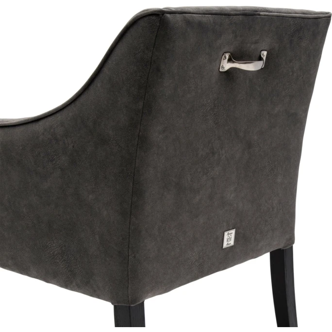 Vertrautes Design im neuen Look! Mit dem markanten silbernen Griff an der Rückenlehne und den dunklen Beinen ist der Savile Row Esszimmerstuhl von Rivièra Maison ein echter Hingucker. Aus robustem Kautschukholz gefertigt und mit weichem „Berkshire-Samt“ bezogen, begeistert der tolle Stuhl durch einen zeitlosen Look mit praktischen Armlehnen und halbhoher Rückenlehne. Der Clou: Der praktische Griff auf der Rückseite von Savile Row ermöglicht ein einfaches Hervorziehen vom Tisch. Egal ob im Esszimmer, in der Küche oder als zusätzliche Sitzgelegenheit: Der Rivièra Maison Polsterstuhl sieht einfach überall gut aus, lässt sich hervorragend kombinieren und ist perfekt für stundenlanges Zusammensitzen. Überzeugen Sie sich selbst, lehnen sich zurück und entspannen in dem bequemen Savile Row Esszimmerstuhl von Rivièra Maison.