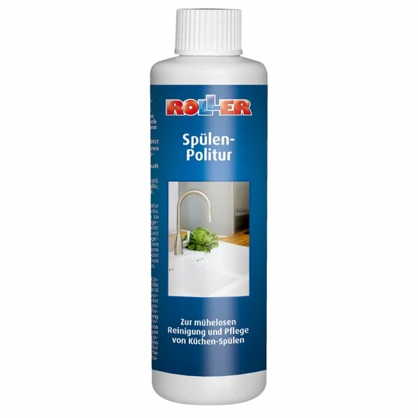 Mit der ROLLER Spülen-Politur bringen Sie Ihre Küchenspüle auf Hochglanz! Die Spülen-Politur ist für viele Materialien geeignet und reinigt, pflegt und schützt Ihre Spüle zuverlässig.