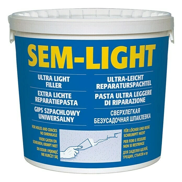 Die Sem-Light Reparaturspachtel von Semin ist eine sehr leichte Spachtelmasse, die sich für jede Art von Reparaturen in Ihrem Haus eignet. Die Spachtelmasse ist schwundfrei und bewahrt dadurch ihr Volumen. Gätten und spachteln kann in einem Arbeitszug vollzogen werden.